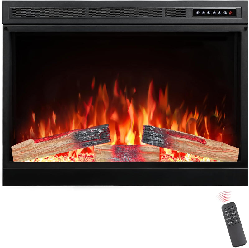 ZAFRO 35" /38" Electric Fireplace Insert with Realistic Flame & Logs, Remote Control, Recessed Fireplace with Auto Color Adjustable Flame, 8H Timer, 750/1500W Heater