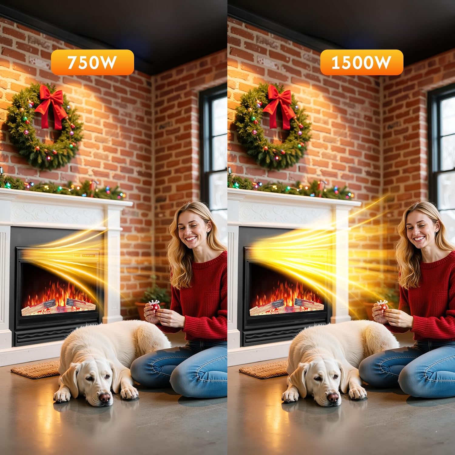 - 【2 Modes of Heat Setting & Temperature Freely Adjustable】Low temperature mode of 750W and high heating temperature mode of 1500W. Electric fireplace insert can be adjusted freely between 50℉ and 99℉, which can meet all your temperature requirements. Provide you with sufficient warmth in the cold weather. Beyond that electric fireplace insert can be used without heating while the logs are burning, which becomes a beautiful decorative item, perfectly decorating your home