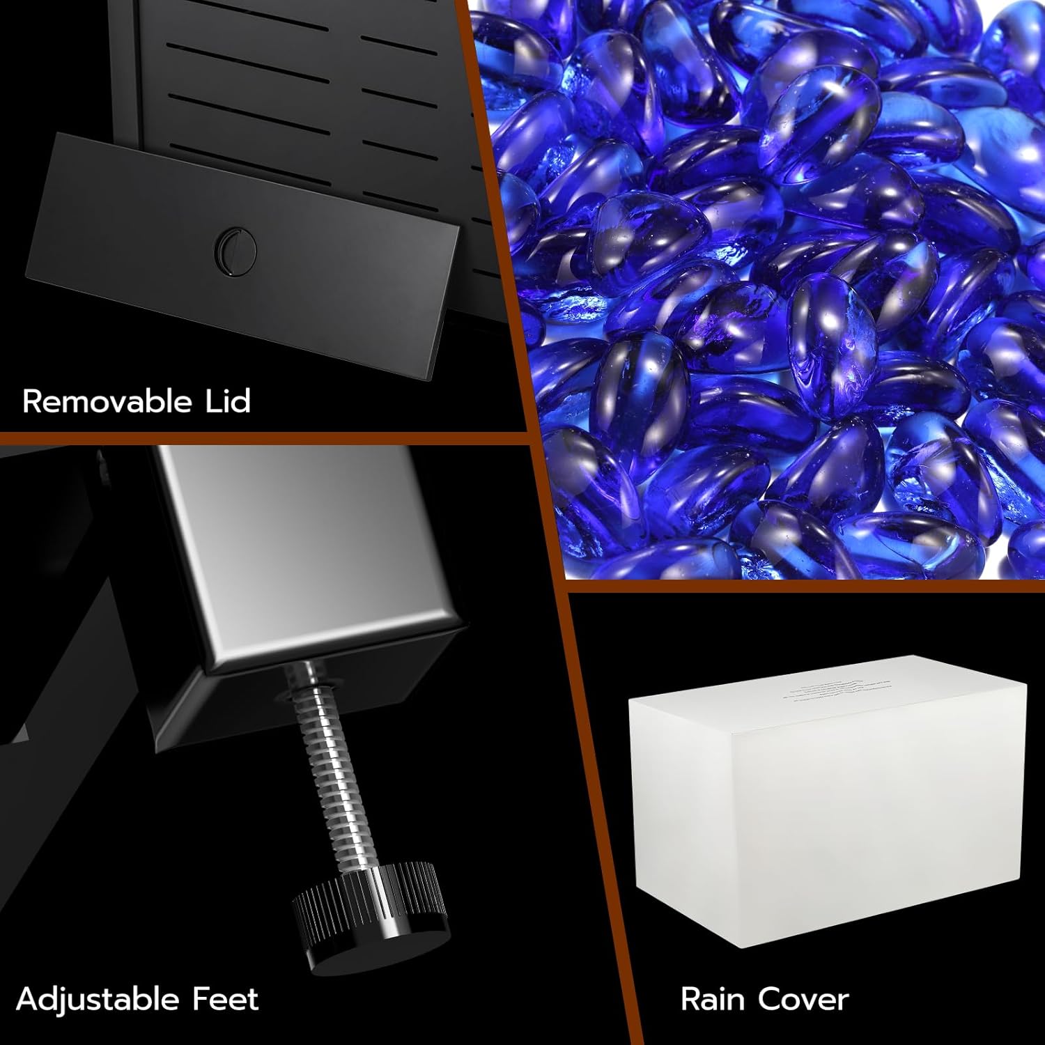 - 【Easy installation+ Perfect Size】Measuring 42.91 inches long, 24.8 inches wide and 22.5 inches high, Including glass stone, waterproof cover,the gas fire pit is designed for efficient use of space as well as aesthetics and practicality.