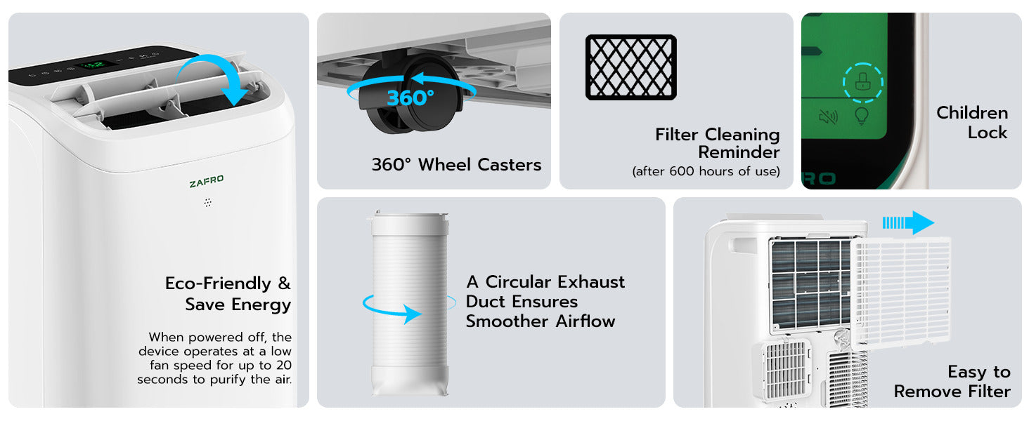No permanent installation required. Lightweight design and smooth mobility make it easy to move from room to room, delivering cooling comfort wherever you need it.